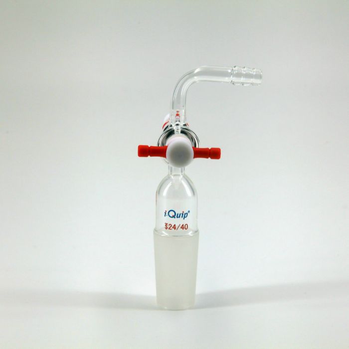 90°接头(精细可调四氟节门);i-Quip™, 材质:高硼硅玻璃;颜色:透明;节门:2mm